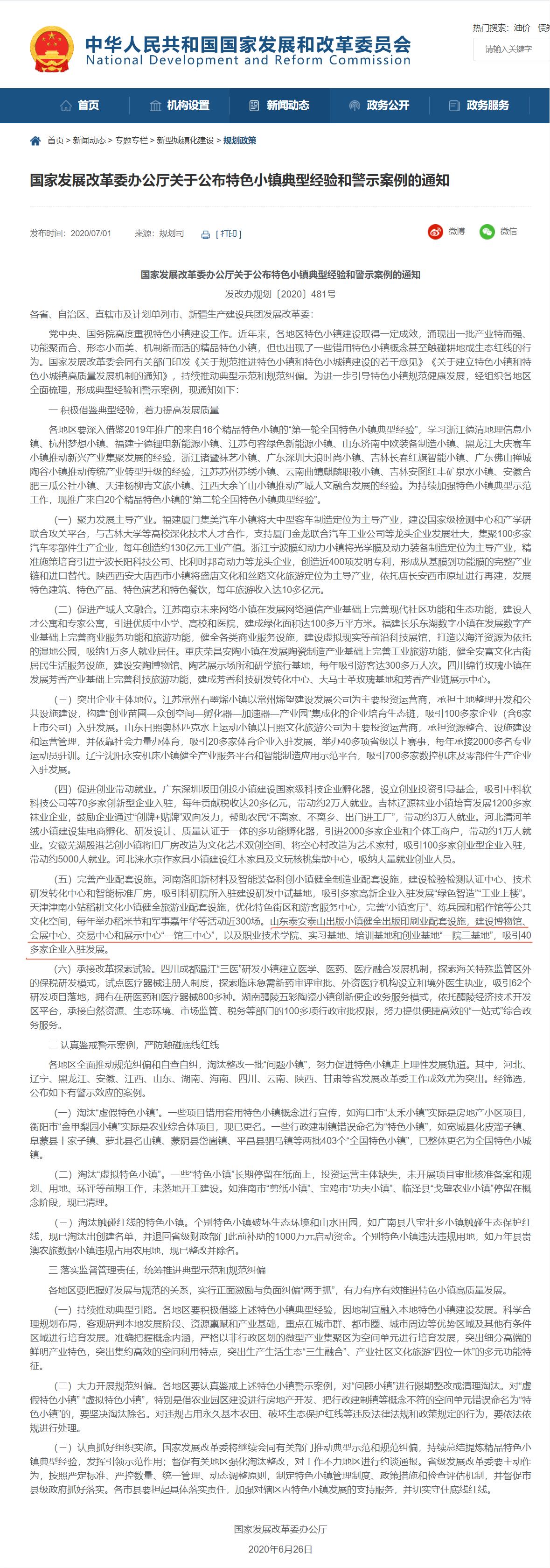 On June 26, 2020, “the Circular of the general office of the national development and Reform Commission on the publication of typical experience and warning cases of characteristic towns was issued in Document No. 481 of the planning of NDRO” (2020), and Taishan news and publishing town was listed in “20 typical experience towns in the country”. The construction experience of Taishan news publishing town is introduced and promoted by authorized media such as Xinhuanet, People's daily and Economic daily.