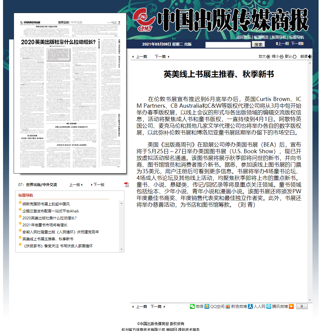 英美线上书展主推春、秋季新书