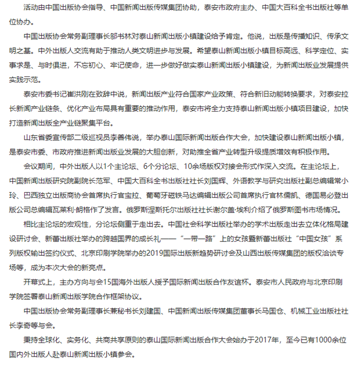 第三届国际新闻出版合作大会(2019·中国泰安)