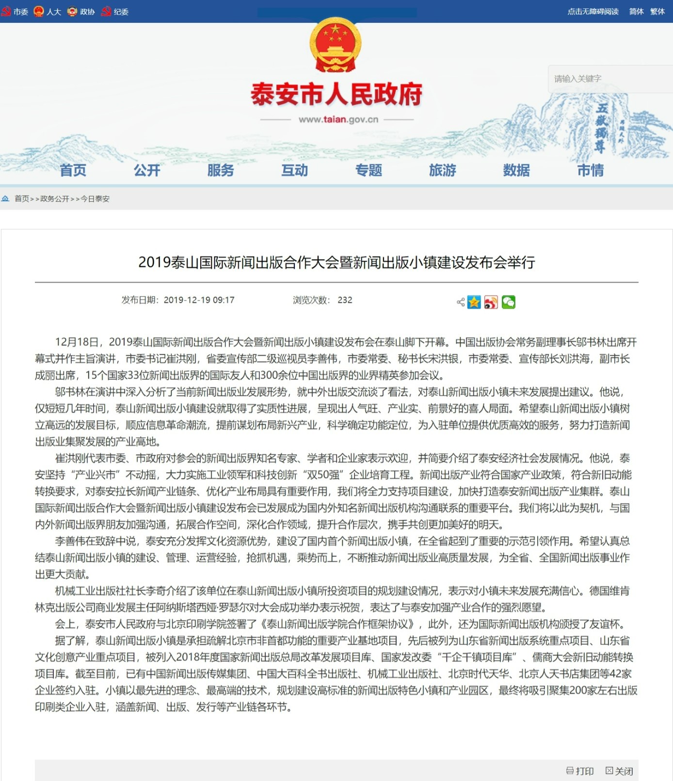 主办单位:泰安市人民政府