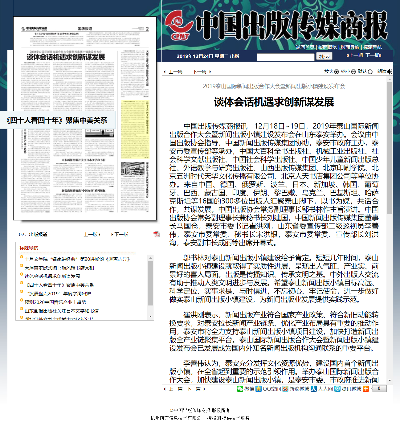 暨泰山新闻出版小镇建设发布会